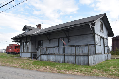 The offices and depot of the Kentucky Railway Museum, a 5,000 square foot replica of the original brick Louisvlle and Nashville New Haven depot opened in summer 1995. Inside, displays include a dining car exhibit, handcar, track inspection car, steam locomotive whistles, a model railroad layout and a ticket office..