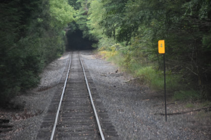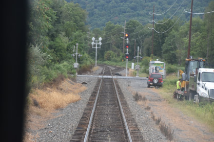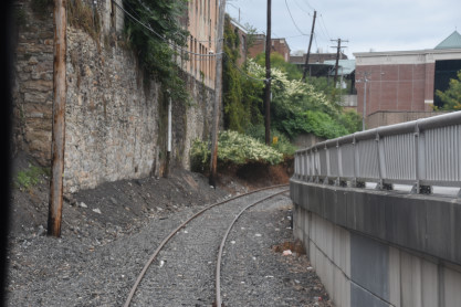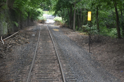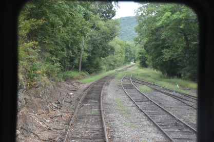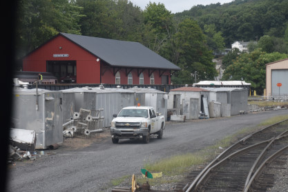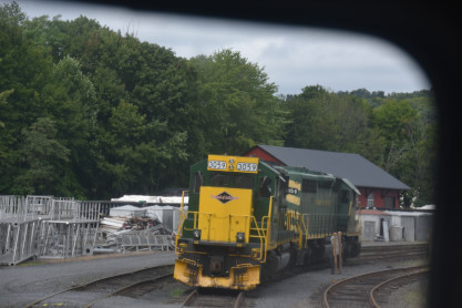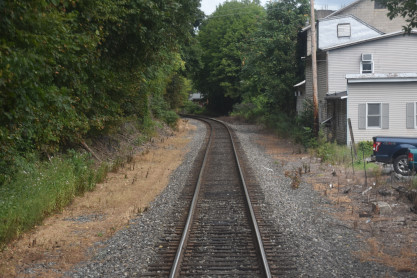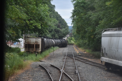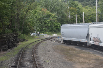 The track bumper in Pottsville and the end of our rare mileage. The engineer switched ends and we proceeded to our next photo runby location in Auburn.