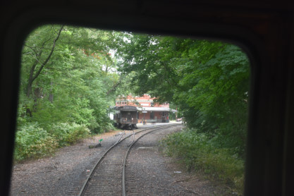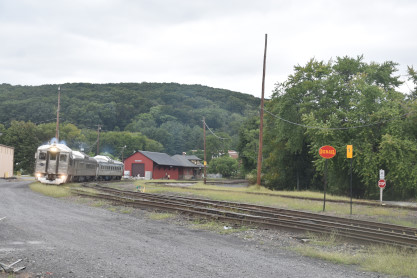 Just outside of the station, we passed a Reading Blue Mountain & Northern freight train which had Reading Blue Mountain & Northern SD50-2 5019, ex. CSX 8550, nee Seaboard Air Line 8550 built by Electro-Motive Division in 1984 and DPU Reading Blue Mountain & Northern SD40-2 3068, ex. Conrail 6469, nee Norfolk Southern 3397 built by Electro-Motive Division in 1978.