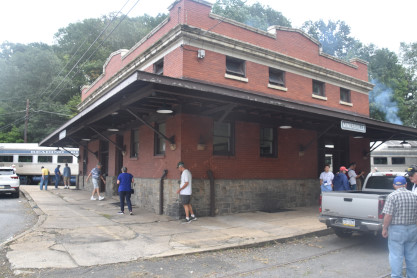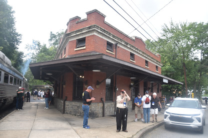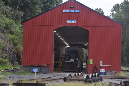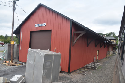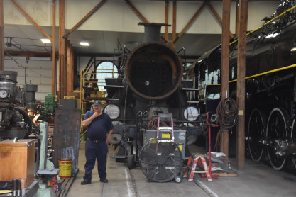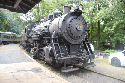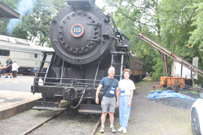 Since 1979, when the late Mr. Robert Kimmel, Sr., started a complete restoration project of this steam engine, called Project 113, numerous volunteers and area partners, including the Reading, Blue Mountain and Northern and the NRHS, have donated both money and time to help make the restoration a success. The restoration is still occurring and one of the volunteers was on hand inside the station, selling souvenirs with all proceeds going to Project 113. Many of our members, including myself and Elizabeth, purchased various clothing items and other souvenirs.