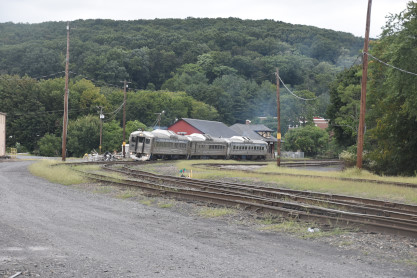 Reading Blue Mountain & Northern RDC1 9167, ex. Metro North Commuter Railway 43, exx. Southern Railroad Company of New Jersey 7, exxx. New York Susquehanna & Western M7, exxxx. Penn Central 43, nee New Haven and Hartford 43, built by the Budd Company in 1953.