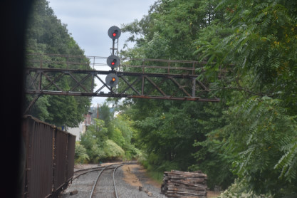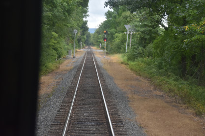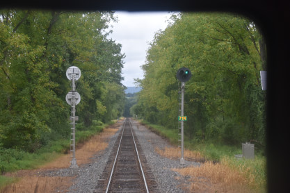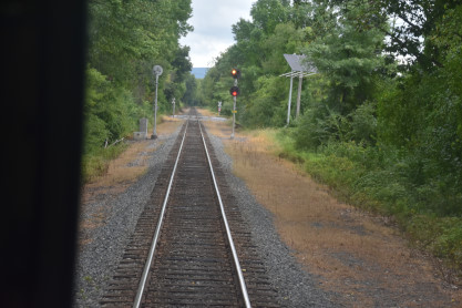A yellow-over-double-red signal means we were nearing Port Clinton.