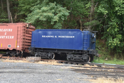 Reading Blue Mountain & Northern 4-8-4 2102, ex. 1985 move to Reading, exx. 1980 sold to Rails Diversified of Ohio, exxx. 1974 moved to Brownsville, nee. 1967 moved to Reading, built by the railroad in 1945.