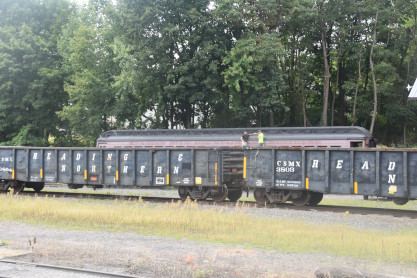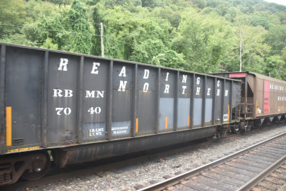 We curved out of Port Clinton passing Reading Blue Mountain & Northern hopper cars.
