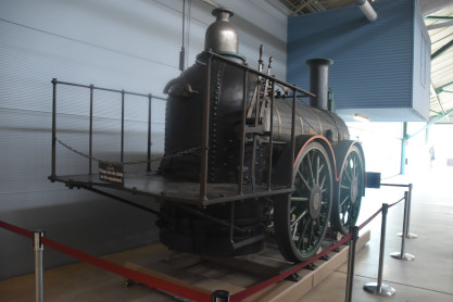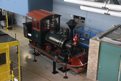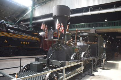 Pennsylvania Railroad Cog 0-4-0 "John Stevens" built by the Pennsylvania Railroad in 1939. It was gifted to the Railroad Museum of Pennsylvania in 1979 by Penn Central Corp and is a reproduction of an 1825 steam locomotive experiment produced for New York World's Fair exhibit.