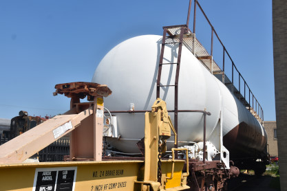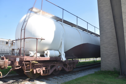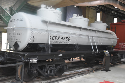 The American Car and Foundry Company, which had its origins in Milton, Pennsylvania, became one of the nation's largest builders of tank cars. This car consists of three separate compartments, each equipped with its own dome and unloading port. It could haul multiple cargoes on a single trip and could also be loaded and unloaded quickly. Heating coils kept its lading fluid in colder months.