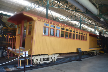 Cumberland Valley Railroad combine built by the railroad in 1855. The line gained great importance during the Civil War, shuttling troops and supplies toward the front line in the South. This car may have played a role in that effort. It became part of the Pennsylvania Railroad's "relic" collection and was displayed at numerous expositions and public events. It incorporates an unusual walkway alongside the baggage compartment, a feature that may have been added after it was built. There is also an extra baggage-room window along the gallery. This car is believed to be one of the oldest surviving wooden passenger cars in the United States.
