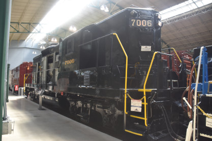 Pennsylvania Railroad GP9 7006, built by the railroad in 1955. It was gifted to the museum in 1985 and was repainted in its original PRR livery at Altoona in 2002.
