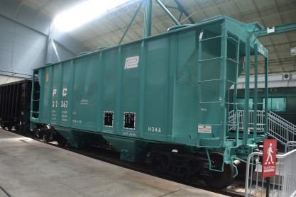 Pennsylvania Railroad hopper car 33164, built by Schoen Pressed Steel Company in 1898. It is the earliest all-steel Pennsylvania Railroad freight car in existence.