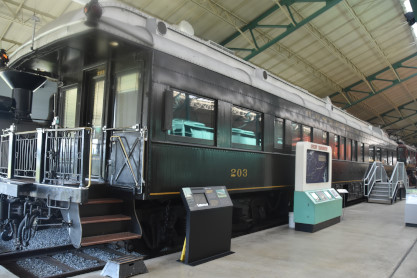 Western Maryland Railway exclusive business car 203, built by the Pullman Company in 1914 and designed as a mobile office for high-ranking railroad executives. It was built for the use of Carl R. Gray (1867-1939), president of the Western Maryland Railroad and other senior officers and included accommodations for up to four executives, with a dining room, kitchen, pantry, crew quarters, lounge and two master bedrooms, each with a shower. The interior was remodelled in 1954 by Dorothy Draper, decorator of hotel and automobile interiors.