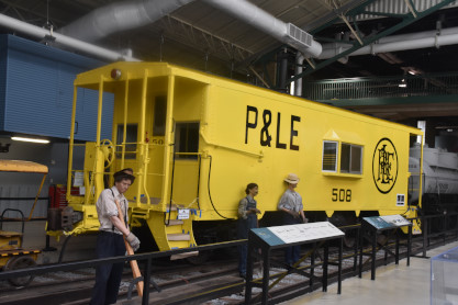Controlled by the New York Central, the P&LE adopted many of the larger road's designs for equipment, including cabooses. 508 is one of 10 bay window cabooses built to NYC plans As freight cars grew taller, the traditional cupola-style caboose provided limited forward visibility. Climbing the ladder to the cupola also presented a challenge and safety risk on a swiftly moving train. 508 is believed to have spent most of its career in and around the Aliquippa Yard in Beaver County. Railroad Museum volunteer Earl Kinard purchased the caboose upon its retirement, accompanying it to Lancaster County and subsequently donating the car to the Railroad Museum.