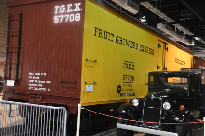 Fruit Growers Express refrigerator car 57708, built by Fruit Growers Express in 1924. Before the advent of the refrigerated car, Americans were limited to foods that could be grown locally. This new transportation technology not only kept produce fresh but also revolutionized the meat-packing and brewing industries by centralizing production. Before mechanical refrigeration, ice was the key. Workers loaded blocks of ice through roof-top hatches. As the ice melted, the water drained through chutes in the corners. Insulated walls, three inches thick, and a built-in circulating system driven by the car's wheels cycled the cool air from floor to ceiling.