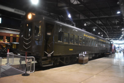 Reading Railroad electric multiple unit 800 built by Bethlehem SteelCompany in 1931 and retired in 1980. On July 26, 1931, regularly scheduled, electric train service began to suburban Philadelphia communities, and electric multiple-unit passenger cars were intended to replace steam on these lines. These multiple-unit passenger cars accelerated faster and afforded passengers other amenities such as electric heat and reduced noise and smoke. 800 and other Reading multiple-unit cars had spring-loaded high-voltage bus connectors on the roof that energized the other cars when contact was made. This permitted the operation of a multiple-unit train with only one, but typically two, pantographs raised – a departure from needing every pantograph raised. This virtually eliminated sparking and reduced wear and tear on the overhead wires.