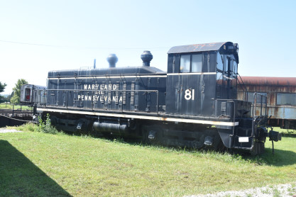Maryland and Pennsylvania Railroad NW2 81 built by Electro Motive Division in 1946. Maryland & Pennsylvania for the most part was a very active short line that operated between York, Pennsylvania and Baltimore, Maryland. MPA ended up being more progressive than most of the larger railroads with their adoption of three new diesels in 1946, 81 being among them. It worked switching duties in the yard and branchline for MPA faitfully until it was leased and sold to PH Glatfelter Paper Company in the 1980's where it was used at their Spring Grove plant. Glatfelter donated the locomotive to the Railroad Museum in 1997.