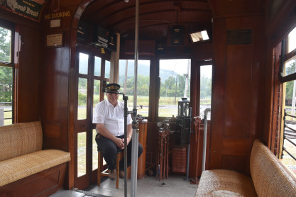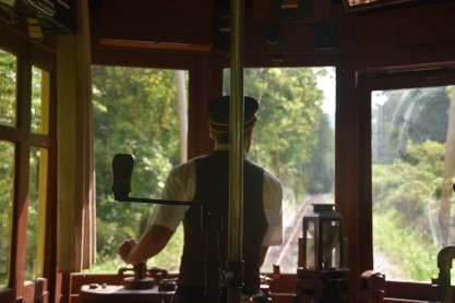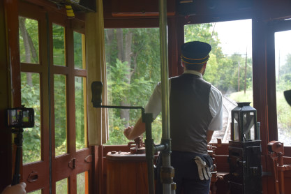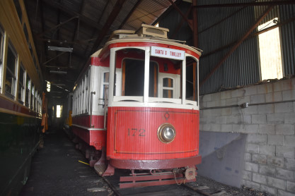 Car 172 is our example of a Toonerville trolley, a small two-axle trolley. The nickname comes from a series of silent comedy films by that name, which featured a rickety little trolley bouncing along the countryside as its motorman engaged in a series of comical adventures. Car 172 which is coincidentally where the first Toonerville trolley movies were made, before Hollywood even existed.