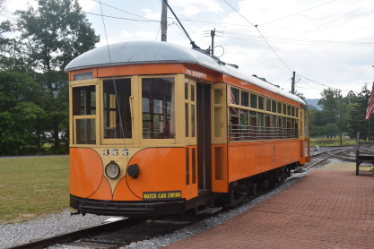 When trolleys stopped operating in Johnstown in 1960, car 355 left for a proposed museum in New Hampshire. Our museum acquired it in 1970 from New Hampshire, when it became apparent that the proposed museum would never be developed. Car 355 has received one of the most extensive restorations at the museum with the help of the ISTEA grant that the museum received from PennDOT. The running gear was extensively rebuilt by the museum, prior to the body restoration. All major areas on the car received new materials, such as steel siding and under frame work, air piping, electrical wiring, flooring, refinished seating material and wooden frames and refinished original cherry woodwork interior.