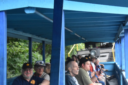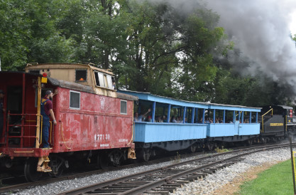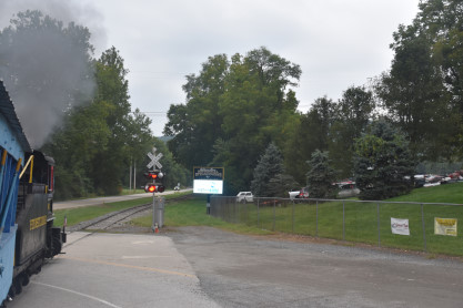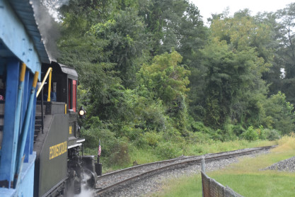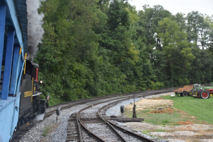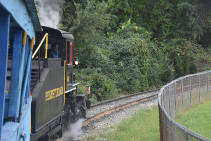 NRHS members enjoying the ride at Williams Grove behind the only surviving Pennsylvania steam engine. I detrained for more pictures.