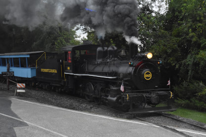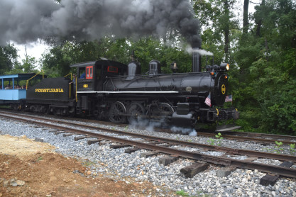 Our VisitPennsylvania Railroad 0-6-0 643, ex. Pennsylvania Railroad Company 9684, nee Waynesburg & Washington Railroad Company 4, built by the railroad in 1901. By 1917, it was declared surplus and put up for sale. Central Iron and Steel Company of Harrisburg purchased the locomotive and worked for the next forty years, being re-numbered 5. The steel mill closed in 1959 and the engine sat until purchased by the Williams Grove group in 1961.