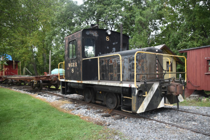 William Grove 25DM 8, nee Pennsylvania Power and Light E129, built by the Whitcomb Locomotive Company in 1953. It was among the last locomotives built under the Whitcomb name. Whitcomb, long a division of the Baldwin Locomotive Works, ceased production of locomotives under their own name in December 1953. At one point, 8 was setup for radio control, although this system has long since been removed. E129 was purchased by the Williams Grove Historical Steam Engine Association in the 1980's and renumbered to 8. It used mainly for switching and track work, but does see limited use in passenger service. From 2001-2006, 8 was our primary locomotive while our steam locomotive 643 was out of service. In the 1990's, the engine received an extensive rebuild that included the installation of a larger more powerful Cummins diesel engine that replaced the original Caterpillar.