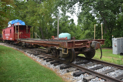 William Grove Railroad flat car 103, builder and year unknown, with railroad wheels sets upon it.