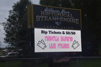 The next sign states William Grove Historical Steam Engine since 1959 66th Annual - Show Dates August 24 through September 1, 2024.