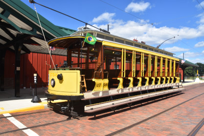Rio de Janeiro Tramways 1758 built by Rio de Janeiro Tramways in 1911. No other streetcar attracted the riding public's attention quite like the open car. One hundred years ago, summer trolley rides were advertised as the perfect way to cool off, and the companies did a brisk business taking passengers to parks or for a ride in the country. Many trolley companies built those parks that became the destinations – it was simply good business! As safety became more of an issue, due to autos sharing the streets, open trolleys in most American cities disappeared in the late 1920s. In Rio de Janiero, however, use of the cars continued into the 1960s, when a dozen cars of JG Brill design and Brazilian manufacture were brought to the United States by a group of trolley museums. Car 1758 is one of these cars. It is the same Brill Narragansett design as open cars operated by West Penn Railways in Westmoreland and Fayette Counties, although the West Penn opens were wider and longer. Car 1758 was originally purchased and restored by the Magee Transportation Museum in Bloomsburg, Pennsylvania. It was restored and then operated there as Magee Museum 3, until that museum's untimely closure as a result of extensive damage from Hurricane Agnes in 1972. The car was purchased in 1973 and moved to New Jersey where it was used as a prop inside a hobby shop. The owner of this shop retired to Florida and the car accompanied his move. It was set up inside the Lionel Train and Seashell Museum in Sarasota, Florida, where it was used indoors as a display and as a seating area to watch videos. In 1990, the car was purchased by the City of Orlando, Florida. It was to be used as the first streetcar (and as a device to generate public interest and Federal funding) for a proposed Heritage Streetcar line in Orlando. The car was refurbished, re-numbered 1 and given the nickname of "Oscar" (for Orlando Streetcar). Unfortunately, Orlando never created the proposed Heritage Streetcar line, and 1758 sat unused in indoor storage for many years until being sold at auction in 2006.