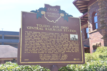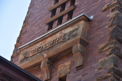 The historic sign for the Toledo and Ohio Central Railroad station built in 1895.