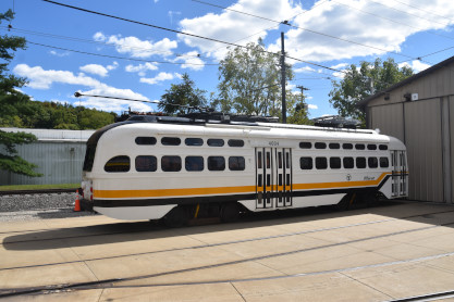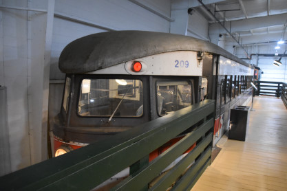 Southeastern Pennsylvania Transportation Authority 209 built by J.G. Brill Company in 1931. When new management came to the Philadelphia & Western Railway early in the Great Depression, it was convinced that high-speed service would bring back the riders. They were so committed to this principle were that wind tunnel testing was employed in the design of these "bullet"-shaped cars, both to bring about the highest practical speed for the cars and also to reduce wind resistance to a minimum - thereby reducing operating costs. The Philadelphia & Western was an example of high-platform, rapid transit type service, where everyday speeds exceeded 75 miles per hour. Cars like 209 proved to be a huge success in this setting, hauling millions of passengers back and forth between Norristown and 69th Street Terminal in Upper Darby (and intermediate stations) for nearly sixty years. The line was purchased by the Philadelphia Suburban Transportation Company (Red Arrow Lines), and continues today under SEPTA ownership and with modern cars.