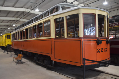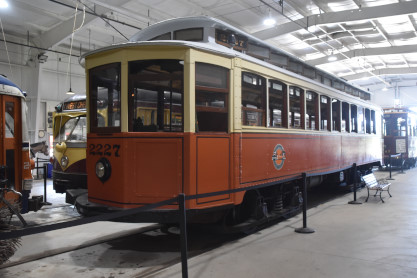 Cincinnati Street Railway 2227 built by Cincinnati Car Company in 1919. Car 2227 represents the standard design used for Cincinnati streetcars built between 1911 and 1920. PTM acquired 2227 from the Lake Shore Electric Railway Museum in Cleveland (successor to Trolleyville, USA), where 2227 had been operated, displayed and restored for many years. Car 2227 was originally preserved by a group of rail enthusiasts in the Cincinnati area.