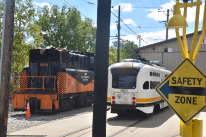 Philadelphia Suburban 14 built by St. Louis Car Company in 1949. The St. Louis cars were delivered in May and June 1949 and represent what many consider to be the last interurban cars built in America. Their arrival permitted Red Arrow to retire a group of Jewett-built interurbans dating to 1913, and several two-man center door cars like cars 66 & 73. While these cars are equipped with the same high-speed running gear as the Brilliners, they also have multiple unit capabilities (can be coupled together in pairs) and two-way radios. These important features were required to expand service along the rapidly developing West Chester line, which operated on single track over the majority of its 19-mile length. In 1954, the widening of Pennsylvania Route 3 brought the decision to abandon the line to West Chester, after which the "Louie" became the mainstay of operation for the remaining rail lines. Cars 14 and 24 were withdrawn from regular service in September 1982 following acceptance of 29 new LRVs Two St. Louis-built cars were selected for preservation here at the Museum because they will demonstrate the operation of streetcars in multiple unit. Work on 14 was the most complex trolley restoration undertaken to date by our crew. Pennsylvania Trolley Museum volunteers began work on this project in the summer of 1997 and returned to car to service at the Museum in June 2004.