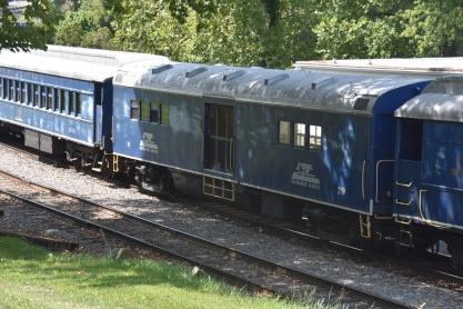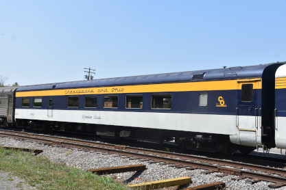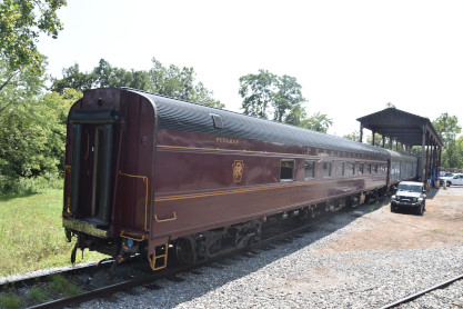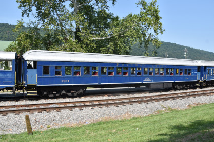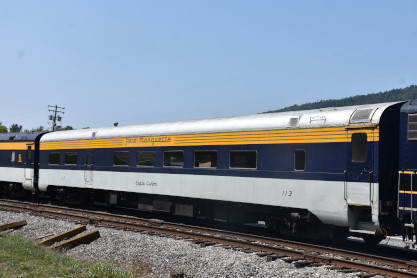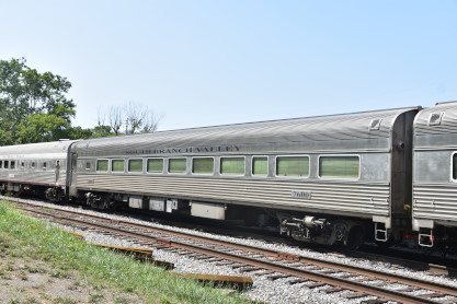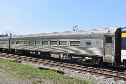 South Branch superior dining car 7605, ex. Amtrak 7605, exx. Penn Central 1584, nee Pennsylvania Railroad 7605, built by Budd Company in 1954. With a seating capacity of 76 passengers, these masterpieces once graced the prestigious Northeast Corridor, serving renowned electrified trains like the Congressional and the Senator, shuttling passengers between New York City and Washington, DC. After their illustrious tenure with the PRR and Penn Central Railroad, these cars continued their legacy under Amtrak, notably serving on the Adirondack route between New York and Montreal. As newer equipment emerged, these iconic cars transitioned into retirement, only to be reborn under the care of the South Branch Valley Railroad for special events.
