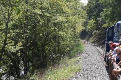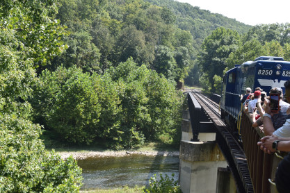 Carved by the South Branch Potomac River, the Trough it is one of West Virginia's very own "Grand Little Canyons". George Washington referred to the canyon as "The Trough" during his 1748 surveying expedition as he gazed into the canyon and declared it was impassable beyond. In 1756, a band of Shawnee defeated European settlers in a bloody skirmish known as the Battle of the Trough during the French and Indian War. This six-mile long canyon has steep, forested walls and is part of the Appalachian Forest National Heritage Area. Hardwood species, primarily of oak and hickory, blend with evergreens to create an abundant forest biodiversity. Spectacular cliffs and rock outcrops along ridgelines create the unique canyon ecosystem. Passengers commonly view songbirds, waterfowl, raptors, turkey vultures, deer, black bears, wild turkeys and turtles.