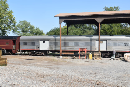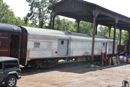 ATAX baggage car 1212, ex. Amtrak 1212, ex. Santa Fe 1026, nee Santa Fe 3509 built by Budd Company in 1953.