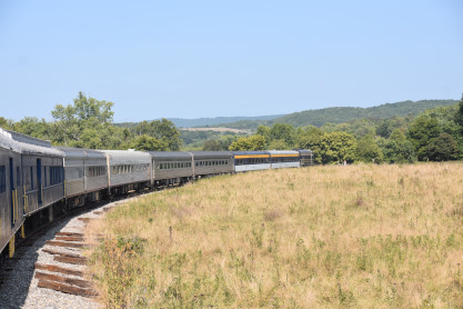 Potomac Eagle Scenic Railroad dining car 8559, ex. Amtrak 8559, nee Southern Pacific 10210 built by Budd Company in 1950. Like its counterpart, this diner underwent various conversions over the years before joining our premium class dining fleet. Today, it stands proud as a centerpiece of our dining experience, providing a unique and memorable culinary journey that complements the scenic beauty of our excursions.