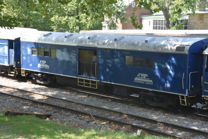 Potomac Eagle Scenic Railroad 4984, nee Canadian National coach 5104, builder and year unknown. Our Vintage Blue Line Standard Coach Cars, originally from the bustling commuter rail service of the Canadian National in the 1920's, bring a touch of nostalgia to your journey. These iconic passenger cars feature cushioned, reversible seats, allowing you to adjust your seating direction for optimal comfort and convenience. With windows that open to let in refreshing breezes, every ride is enhanced by the charm and functionality of these historic coaches.