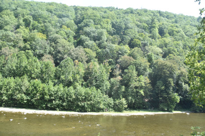 Trees that line the river.