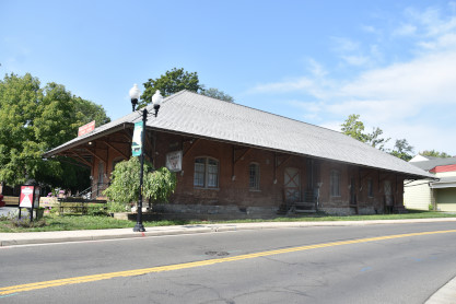 Pennsylvania Railroad freight house, built circa 1895 and home to the Winchester Little Theatre. This group was organized in 1929 "...to present, produce and encourage the production, acting and writing of plays..." by a group of persons interested in providing an outlet for their artistic interests and bringing to the community entertainment and culture. The first production, Ario de Capo, was staged at Handley High School in 1930. By 1955 the WLT had found a home in the old Bark Mill, which was owned by one of its members. Here the group began to do shows in "arena" style, or theater-in-the-round. In 1974, WLT stayed on track as it moved into the old Pennsylvania Railroad freight station. Through the generous support of friends and patrons, the building was paid for in only three years.
