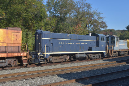 United Railroad Historical Society of New Jersey VO 1000 412, ex. United States Navy 65-00128, nee United States Navy 19, built by Baldwin in 1945. It is leased to SMS Rail Lines for display and painted as Baltimore and Ohio 415.