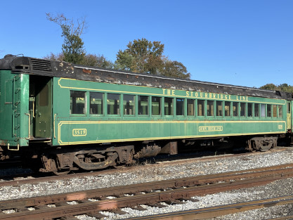 SMS Rail Lines coach 3519, ex. The Stourbridge Line 3519 "John Roebling" 1983-1985, exx. New Jersey Transit 3519, exxx. Conrail 3519 1976 -1983, exxxx. Erie-Lackawanna 3519 1961-1976, nee Delaware Lackawanna & Western 2519, built by the Pullman Company in 1930.