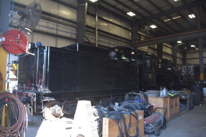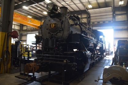 Woodstown Central 0-6-0 9, ex. New Hope and Ivyland 9 1966, exx. Steam Trains, Inc. 9 1964, exxx. Virginia Blue Ridge 9 1958, exxxx. United States Army 616 1952, nee United States Army 4023, built by American Locomotive Company in 1942. Restoration work began on the switcher in 1992 but did not proceed very far. By 2009, it was at SMS undergoing restoration as time allowed. When Salem County awarded SMS the contract to operate the Salem Branch and SMS decided to get into tourist train service, work accelerated on the 9, with its first test-firing in 2021 and its first movement under its own power in 2023.