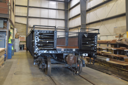SMS Rail Lines open car built from a gondola, still a work in progress. Presumably this is for the Woodstown Central Railroad, which SMS Rail Lines operates.