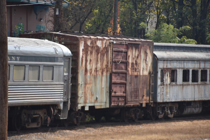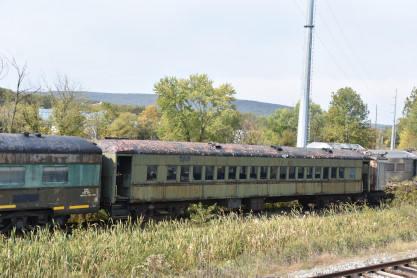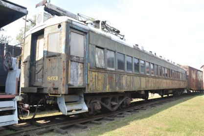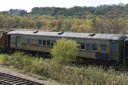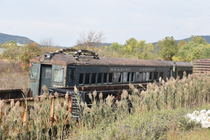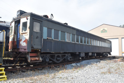 Reading coach trailer 774 1947, nee coach 1276, built by Harlan & Hollingsworth in 1925. It operated in the Philadelphia commuter district and was hauled by steam power. Rebuilding to a trailer car occurred for use with the electric MUs in the electrified suburban territory as a means to increase the number of available seats for passengers. After retirement during the Bicentennial year, it was acquired by Rail Tours for operations out of Jim Thorpe on the former Central of New Jersey mainline, a service it provided until Rail Tours was replaced by the Lehigh Gorge Scenic Railway in 2005.