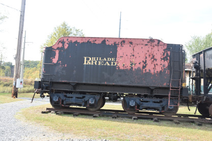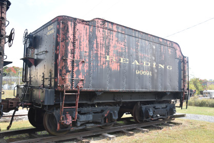 Reading steam engine tender 90691 built in 1901. In 1966, it was owned by the Wawa & Concordville, then later went to Wilmington & Western before being acquired by the museum in 2009.