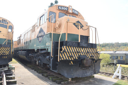 Reading U30C 6300 built by General Electric in 1967. The locomotives were delivered with snowplough pilots and were the very first Reading locomotives to carry the "Bee Line Service" slogan on the sides of the long hood. They were used on most parts of the Reading System with the exception of the Wilmington & Northern or Perkiomen Branches. The U30Cs were the heaviest single-unit diesel locomotives ever operated by the Reading. In April 1976, the five Reading GE's became part of Conrail's locomotive roster and 6300 was re-numbered 6579. Retired in 1982, it was sold to the Chicago & North Western Railroad but they did not operate it. It was acquired by the museum in 1991 and has been partially restored to stabilize the locomotive from further deterioration. A full cosmetic and mechanical restoration is planned for the future to return 6300 to operating status.
