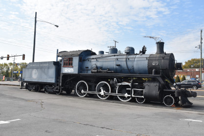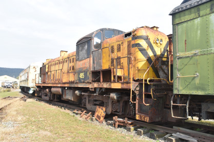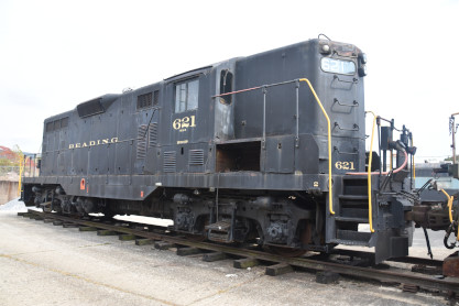 Andrew Merrilees RS-3 68, ex. Domtar Packaging 68 1978 to 1987, exx. Roberval and Saguenay Railroad 30, exxx. United Railway Supply Company 485, nee Reading 485, built by American Locomotive Company in 1952. After some confusion and turmoil involving a Canadian historical group which also wanted the locomotive, the museum finally acquired it in 1993. It arrived at Reading on October 28, 1997, exactly one year after its initial inspection.
