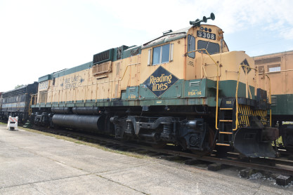 Reading C630 5308, built by American Locomotive Company in 1967. It is one of the largest locomotives preserved from the former anthracite carrier and also the only surviving member of the Reading's fleet of twelve. 5308 was assigned to mainline freight service between the railroad's terminals at Philadelphia, Reading, Harrisburg, Allentown and Jersey City, New Jersey. Acquired by the museum in the 1980's after a stint on Conrail, the unit has been restored to the railroad's 1960's look, complete with Bee Line Service logos.