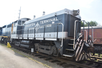 Stockton Terminal and Eastern SW1200 678, ex. Stockton, Terminal and Eastern 9319, exx. Pacific Harbor Line 31:1, exxx. Pacific Harbor Line 9319, exxxx. Louisville & Indiana Railroad 9319, exxxxx. Conrail 9319, nee Reading 2719, built by Electro-Motive Division in 1963. It was donated to the museum in 2019 and will be restored as Reading 2719.