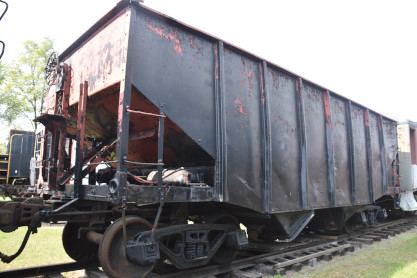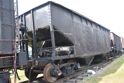 Reading two-bay hopper car 66418, built by the railroad during World War II to conserve steel and is one of very few surviving composite cars (steel with wood sides).