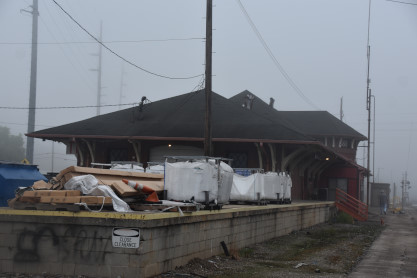 As everyone was photographing this station, the sky let loose and it poured. We hurried back to the bus and boarded, drying out on the way to Jasper, a station that Elizabeth and I visited two day ago. Throughout each day, area railroad and specific town history wss given by S. David Phraner.