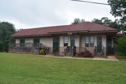 The Tate Depot served the small community until 1949 when the Louisville and Nashville Railroad discontinued passenger service on the "Hook and Eye" line. In the years following the building was used for storage and later as the maintenance-of-way office for the Georgia Northeastern Railroad. After they moved to a new location in Ballground, Georgia, the building sat vacant for many years and fell into disrepair. The depot was located very close to Highway 53 and blocked the view for motorists approaching the grade crossing. In 2015, a decision was made to move the depot from the northeast corner of the highway and railroad tracks across the road to a vacant lot on the southeast corner. The depot was also set back approximately 100 feet at a slight angle from the tracks. After the depot was moved, it was restored by the Marble Valley Friends group to serve as a community center. The depot has been nicely restored inside and out. It is fantastic that the history of the Tate Depot has been preserved for future generations to see and appreciate.